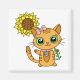 Cute Orange Kawaii Cat with Sunflower Magnet