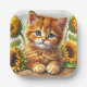 Cute Orange Kitten with Sunflowers Watercolor Paper Plate