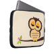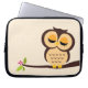 Stylish electronics sleeve features a beautiful vector illustration of an owl perched on a tree branch.