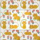 Cute Orange Tabby Cat Floral Repeat Pattern Fabric