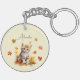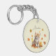 Cute Orange Tabby Kitten in Fall Leaves Key Ring