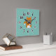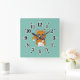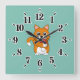 Cute Orange White Cat Eating Red Apple Cartoon Square Wall Clock