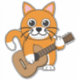 An illustration of a cute kawaii cartoon orange white cat playing his acoustic guitar. This funny design is a gift idea for kids love to play music instruments, kitten lovers, music lovers and guitar player lovers.