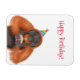 Make someone smile on their birthday with this cute magnet featuring Basil the orangutan in his rainbow party hat blowing out the candle on his birthday cake 🦧
