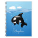 Cute Orca Whale in Ocean with Custom Name Notebook