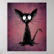 Cute Oriental Black Cat Art on Gothic Purple Poster