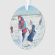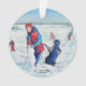 Cute Original Artwork Ornament, Classic Snow scene Landscape Art with Children Playing In Snow, Christmas Season/ Winter Landscape Art.