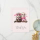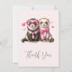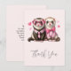 Thank you card with a cute illustration. A pair of otters in pink people clothing. Wearing striped shirts and one wearing a tie and the other wearing a bow. Surrounded by love hearts.
