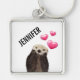 A personalised keychain with an image of a cute otter with hearts floating upward. The hearts are pink and chubby-looking with a shiny reflection.This otter is quite adorable with his paws resting under his furry little chin. His fur looks wet from hanging out in the water.