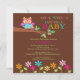 Start your event off right with our cute owl Baby Shower invitation featuring the sweetest little mum owl sitting on a tree branch with a baby owl set on a chocolate brown background. Our modern & colourful owl baby shower invitation features pink, turquoise blue, lime green, orange and polka dot owls. Perfect for your owl theme baby shower. Just personalise with your information and you're all set to go! Matching items including baby shower postage, favour stickers, thank you cards & thank you stickers are also available in our shop. © Dreamlike Magic