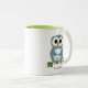 Cute Owl Cartoon, Laurel Leaves & Calligraphy Two-Tone Coffee Mug