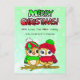 Cute holiday owls cuddling on a tree branch. Affordable Christmas postcard with hand drawn artwork.