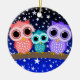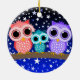 Cool and cute stars and family of owls Christmas ornaments, note cards, greeting cards, postage stamps, American Mojo pillows, iPad 2 skins and gifts for owl lovers, bird lovers and birders. Mama owl, papa owl and baby owl with starry night background. Unique, colourful and cool owl gifts for birthdays, Christmas or any occasion.