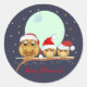 Cute Owl family with Santa hats & custom text Classic Round Sticker