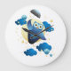 Fantasy illustration of cute flying owl with umbrella. Digital art