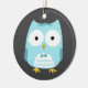 Light blue owl groom wearing ruffled shirt and bow tie. This cute ornament makes a fun gift for the newlywed husband. Text can be personalised with your own message. Owl bride ornament also available from Jenn's Doodle World.