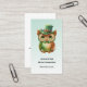 Business cards wwith a wonderful whimsical illustration. A big eyed brown owl wearing a fancy green top hat and bow tie.