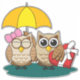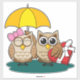 Cute Owl Lovers w/ Umbrella & Red Chocolate Box