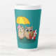 Cute Owl Lovers w/ Umbrella & Red Chocolate Box Latte Mug