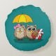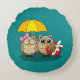 Cute Owl Lovers w/ Umbrella & Red Chocolate Box Round Cushion
