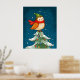 Cute little Christmas owl on a snowy Christmas tree poster print wall art design.