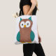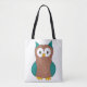 Tote bag features an all-over print of a cute brown and blue owl on the back side, and a giant owl on the front!
