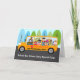 Say thank you to your child's bus driver with this fun cute greeting card. The design features an owl driving a school bus with students owls riding. They're going down a street lined with whimsical blue and green trees. Personalise this card with the school name, as well as the cover and inside. It's a personal way to say thanks to the one who carries the precious cargo.