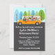 Come celebrate your bus driver's last stop and kick off their retirement! This cute whimsical design features a yellow school bus with owls. Green and blue trees line the background. Personalise this invitation for a bus driver's retirement party. There is also plenty of space on the back for more information, photos, a brief description of their years of committed and dedicated service. This invitation also works well for a teacher retirement, or a child's birthday with a bus theme.