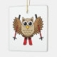 Cute Owl Skiing Cartoon Ceramic Ornament