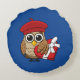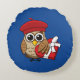 Cute Owl with Red Beret and Heart Box Round Cushion