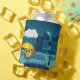 An illustration of a cute owl with yellow umbrella and white cloud on a rainy day inside the city. This adorable bird in the urban area with buildings and street light design is a gift idea for night scene landscape lovers and animal lovers.