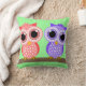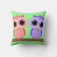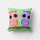 Cute pink and purple owls American Mojo pillows, t-shirts, sweatshirts, shirts and owl gifts for owl lovers, bird lovers and birders. Two owls sitting on tree limb. Unique, colourful and cool owl gifts for birthdays, Christmas or any occasion.