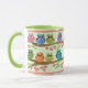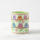 This mug has a design with cute illustrative, colourful owls sitting on branches with little flowers around. This product can be customised by changing the background colour into the desired one (Use customise it, edit, (advanced) background function). The frame on this mug is part of the design.