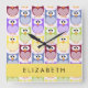 Cute Owls, Owl Pattern, Colourful Owls, Your Name Square Wall Clock