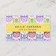 Cute, fun and adorable business cards with owls in various colours. Modern and trendy design, perfect for pet shops and bird stores.