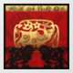 In a square are 2 black Oxen, placed under a golden shape inside of which is the third ox with ideogram. Behind the scene there is a red background on which decorative and ornate letters form the words: OX YEAR. Design on square extra-large window decal (40"x40") with black background. Matching greeting card, holiday postcard and more... Perfect for Chinese New Year of the Ox or birthday (people born in Ox Year).