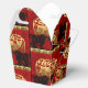 In a square are 2 black Oxen, placed under a golden shape inside of which is the third ox with ideogram. Behind the scene there is a red background on which decorative and ornate letters form the words: OX YEAR. Design on take-out favour box.Available in tent, cube and gable favour boxes. Matching greeting card, holiday postcard and more... Perfect for Chinese New Year of the Ox 2021 or birthday (people born in Ox Year).