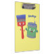 Cute paintbrush and paint cartoon characters clipboard