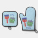 Cute paintbrush and paint cartoon characters oven mitt & pot holder set