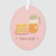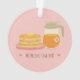 A pink ornament with a cute doodle of pancakes and maple syrup, the food pairing that is perfect together. Text reads "We are perfect together!" with two hearts.