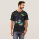 I give wanted to give this a 4 instead of a 5 because these Basic DARK T0shirts run unexpectedly SLIM or Narrow. Which is great if you do not have a potbelly, but I have a paunch. It isn't the shirt's fault that I've got a beer belly. The design and shirt itself is a quality cotton shirt. The color is more of a deep purple, but still a very pretty color. The Basic DARK T-shirts run a bit SLIMMER than the Basic Ts. The neck is a fraction narrower (or seems to be narrower) also. I'm a paunchy middle-aged woman and my neck is 12 inches (31cm) thick and the neckline fell about the same as in the photo of the man, and I had the desire to tug it a bit. So if you're a thick necked man or like loose shirts, be aware these are slimmer shirts. Once I get rid of my lockdown paunch it'll look great. The shirt washed well in cold water with no apparent bleeding. We don't have a dryer, so it hung dry. Did not shrink. Love the colors and the design. The design looks smaller on my shirt than it does on the model on-line. But still, it looks good on the shirt. The printing looks as it does on the model, just the size seems fractionally smaller. Washed garment in cold water, hung dry and design appeared unaffected.