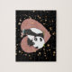 Cute panda bear jigsaw puzzle for animal lovers- Displays an adorable panda bear playing with a dragonfly and a trendy, jumbo faux foil, rose gold heart overlaid on scattered, sparkly look gold glitter stars. On black background to make stars pop, which may be changed to any background colour. Note: All images are printed. Not actual foil or glitter. Panda bear lovers will enjoy this cute wild animal design available on many other animal theme gifts in our online Zazzle.com/angela65* store. Several other animal puzzles are also available. Personalise however you like by adding your own text or name, etc. Great gift for Earth Day or for school activity.