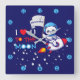 Cute Panda Bear On Rocket Ship Kids Personalized Square Wall Clock