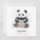 Cute Panda Bear Rustic Easter botanicals Easter card. Rustic watercolors and lineart style black and white panda bear with beautiful spring botanicals and Easter eggs. Personalised text with a lovely trendy script.