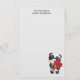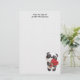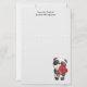 Stationery paper with with an adorable watercolor drawing. An adorable black and white panda bear carrying a bouquet of roses.