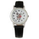 A watch with an adorable watercolor drawing. An adorable black and white panda bear carrying a bouquet of roses.