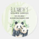 Business stickers with a cute watercolor illustration featuring a black and white mum and baby panda bear cuddling together. Mummy is holding her cub amongst some green bamboo stalks.