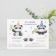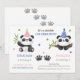 Cute baby panda kids birthday invitation featuring two adorable panda wearing party hat with a panda footprint and surrounded by stars.
