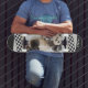 Cute Panda Chequered Modern Collage Custom Name Skateboard features your personalised name in modern typography with a collage of a panda playing in the snow and ripped chequered paper. Personalise by editing the text in the text box provided. Give a custom made gift, personalised skateboard to your favourite skateboarder for Christmas, birthday or your BFF. Designed by ©Evco Studio www.zazzle.com/store/evcostudio