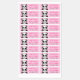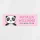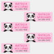 Waterproof property labels featuring a cute cartoon panda bear on a pink (or custom colour) background with customisable name and telephone number. Great for labelling your belongings